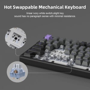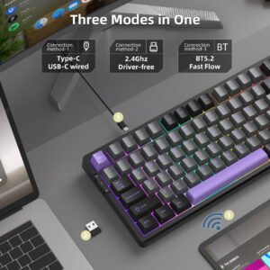 MageGee Light100, Tri-mode connection, 95% layout with 99 keys, Creamy sound, Silent Typing, RGB lighting, hot-swappable, Customized pre-lub linear switches, PBT keycaps, supports 2.4G/ BT /wired.