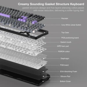 MageGee Light100 is designed with Gasket mount structure, and 5 sound absorbing layers, which brings creamy sound and soft bouncy touching feeling.